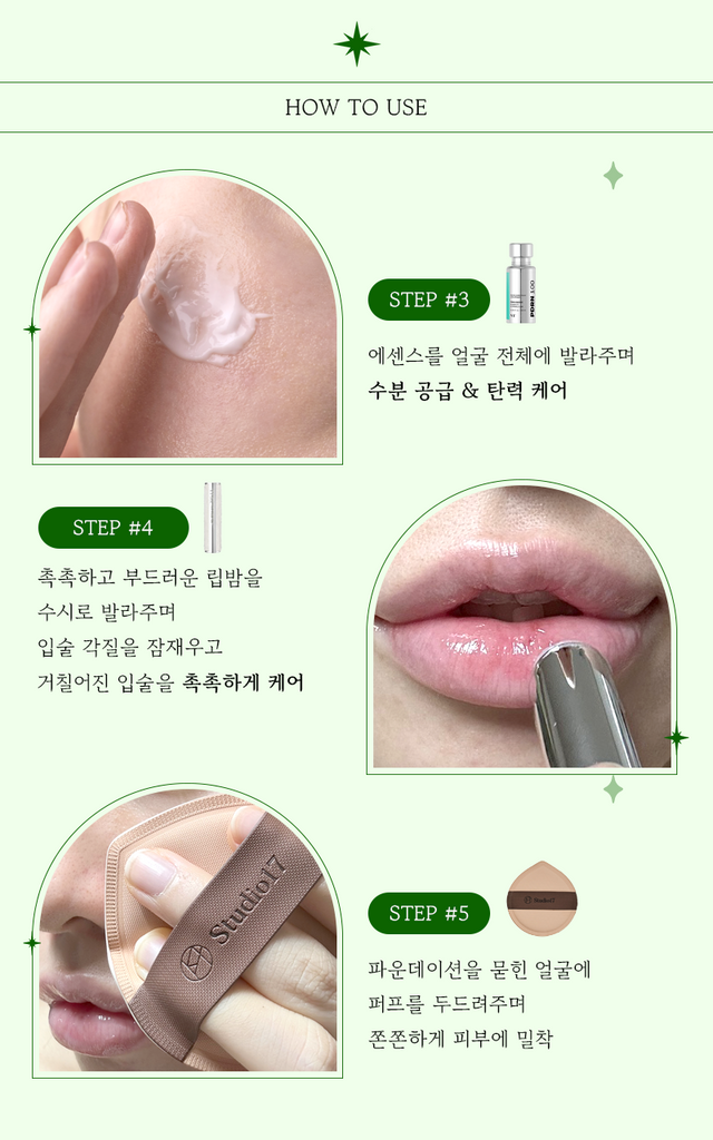 스킨케어를 탄탄하게 진행해 주고 파운데이션을 발라주면 스킨케어에서 올라왔던 물광들이 사라지지 않고 그대로 남아있는 촉촉한 메이크업이 가능하다. 파운데이션이 잘 끼이는 눈가, 코 주변 등에도 끼임 현상 없이 깔끔하게 마무리할 수 있어 파운데이션만 발라도 맑고 투명한 피부 표현을 연출할 수 있기 때문에 가끔 메이크업 아티스트한테 받은 거냐고 기분 좋은 오해를 받곤 한다.