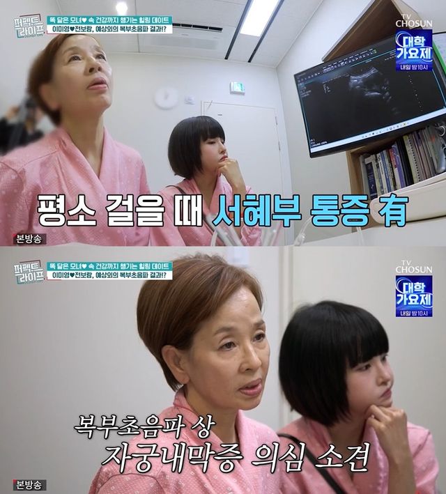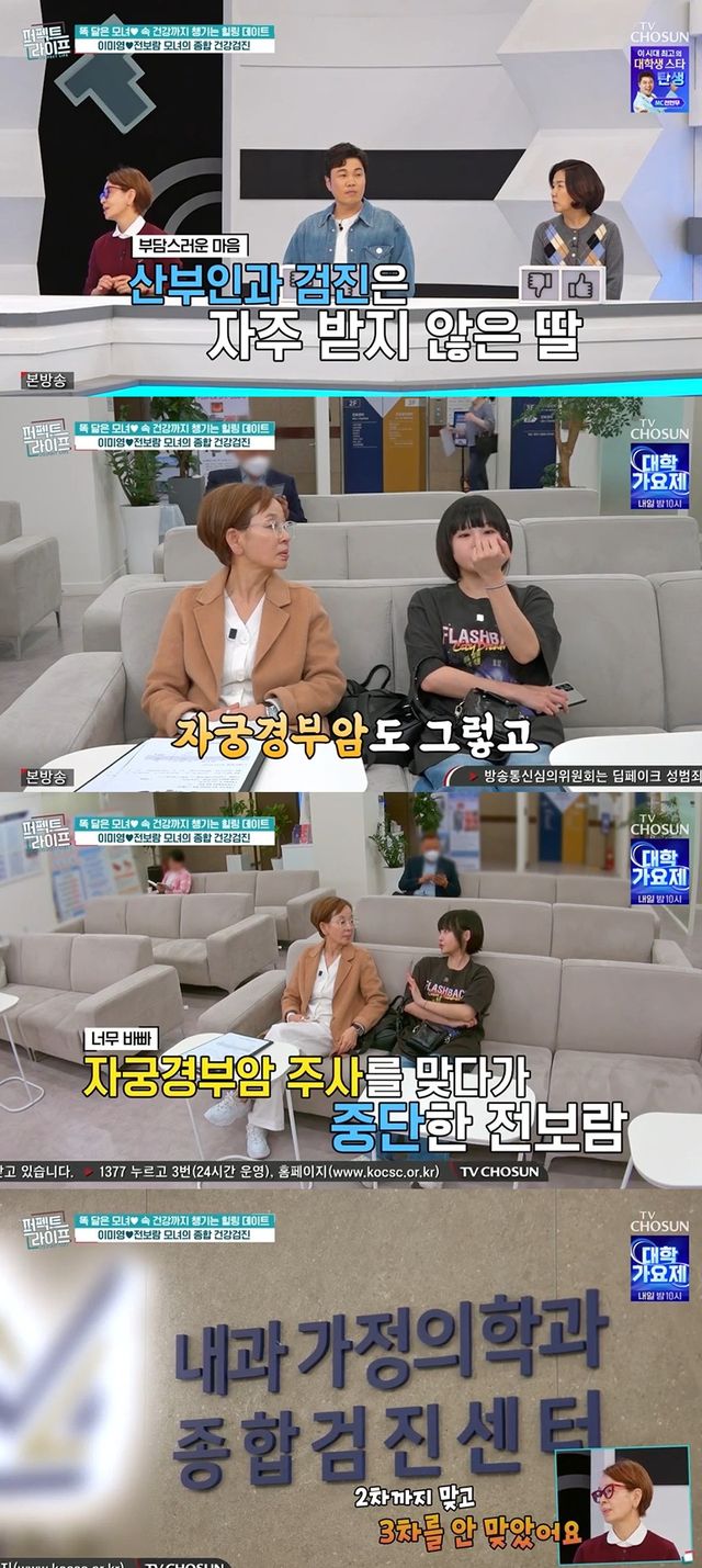 23일 방송한 TV조선 '퍼펙트 라이프'에는 똑 닮은 모녀인 배우 이미영과 가수 전보람의 건강검진기가 담겼다.