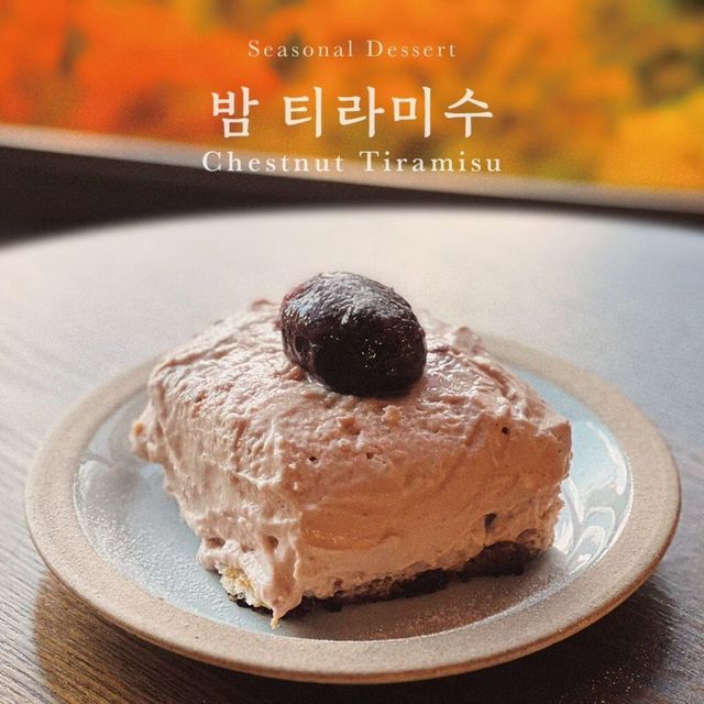 말차 티라미수 맛집으로 유명한 카페 가배도에서도 밤 티라미수를 맛볼 수 있어요. 정갈한 일본풍 인테리어 속에서 즐기는 밤 티라미수는 독특한 감성을 불러일으키죠. 진한 에스프레소가 시트를 촉촉하게 적시며, 고소한 밤 크림과 조화를 이루는 것이 특징. 부드럽게 살살 녹는 가을의 맛이 궁금하다면 방문해보시길.