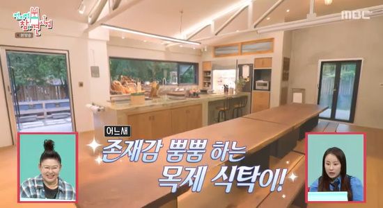 부엌이 공개되자 영상을 보던 패널들은 "뭔가 달라졌다"라며 금세 변화를 알아챘다. 몇 달 전 비어있던 곳에 존재감 가득한 목재 식탁이 들어와 있었던 것. 어반자카파 박용인은 "저렇게 나무 통으로 자르는 건 귀한 건데"라며 감탄을 금치 못했다.