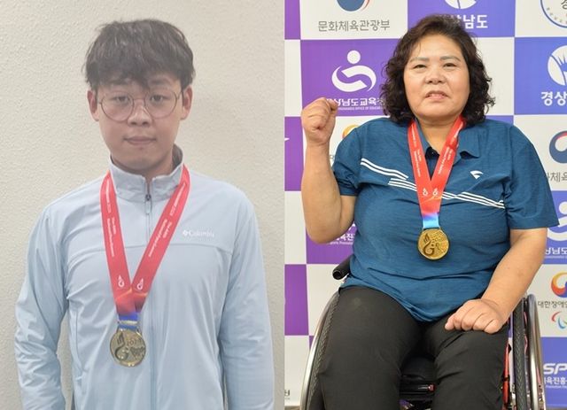제44회 전국장애인체육대회 수영과 볼링에 금메달을 따낸 고준혁과 박하연(왼쪽부터). 제주자치도장애인체육회 제공
