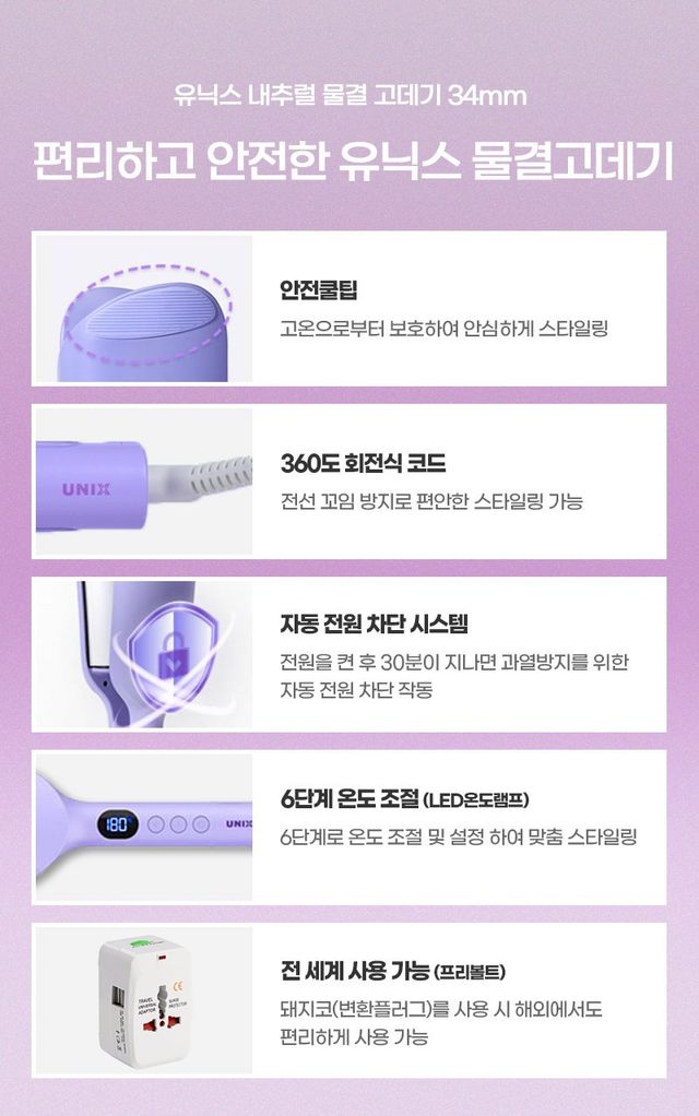 유닉스의 물결 웨이브 고데기는 안전성과 편리함을 모두 갖춘 제품이다.