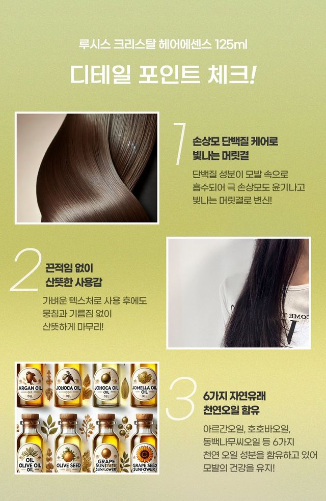 이런 디테일 포인트들이 합쳐져 루시스 크리스탈 에센스는 어떤 모발에도 효과적으로 사용 가능한 필수 아이템이라는 사실!