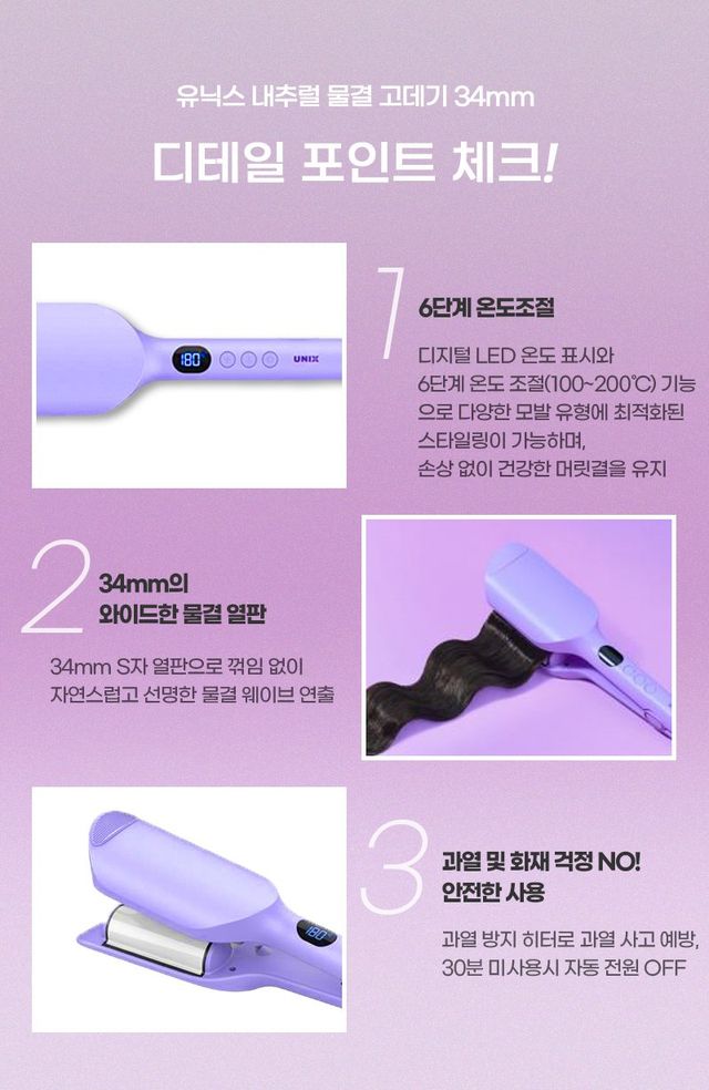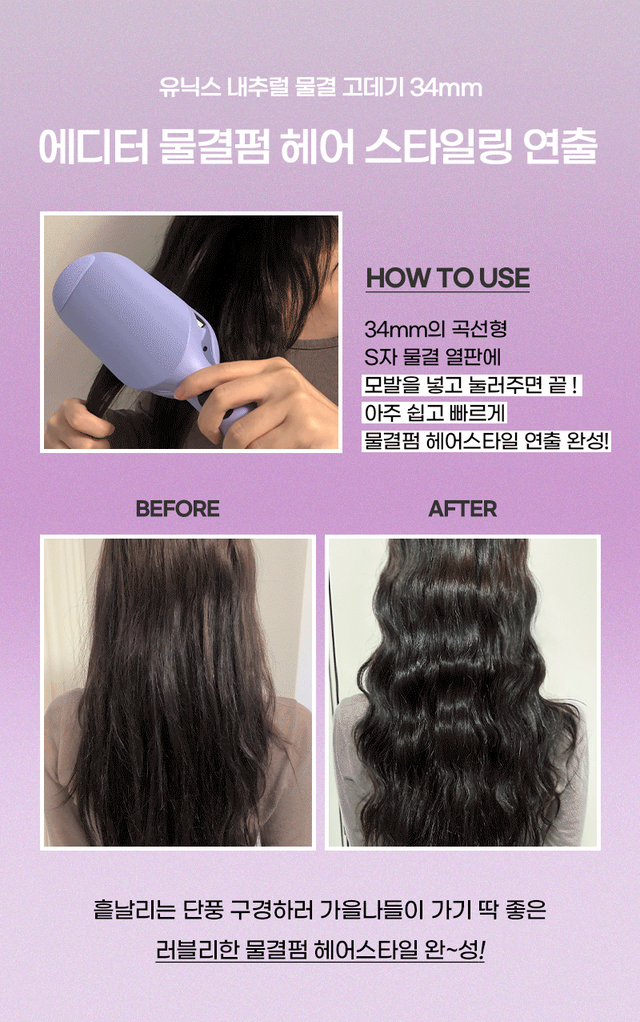 이 모든 기능이 합쳐져 유닉스 웨이브 물결 고데기는 가을 스타일링을 완벽하게 도와주는 필수 아이템!