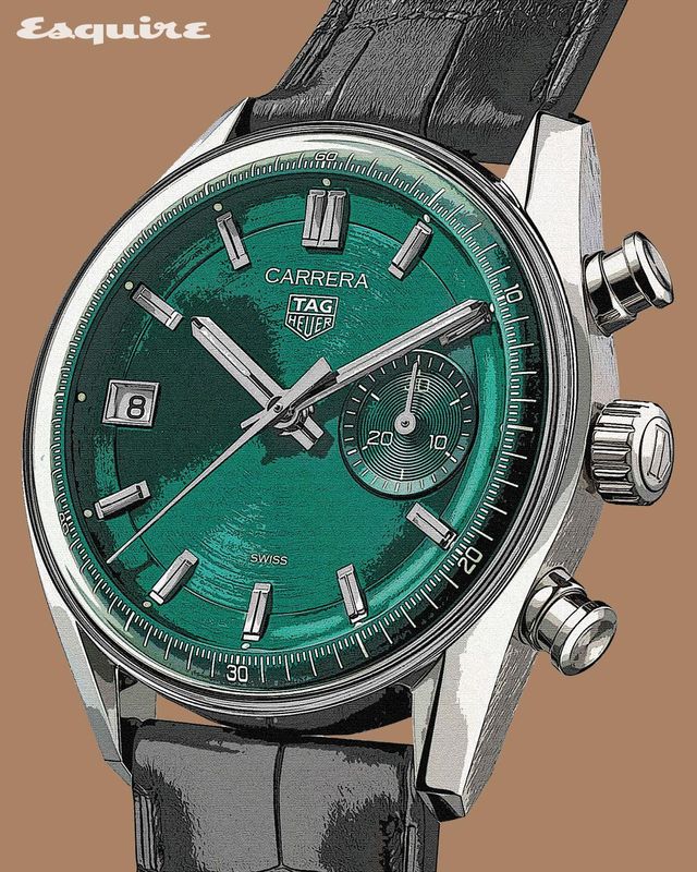 」1968년 작 까레라 다토 45에서 영감을 받은 까레라 크로노그래프 다토는 레트로에 한창 열중하고 있는 태그호이어의 기조를 드러낸다. 까레라 다토 45는 날짜 기능의 라틴어 ‘Dato’와 45분을 계측할 수 있어 붙은 이름이다. 45분 카운터 단 하나만 달려 있어 그리스-로마 신화의 외눈박이 거인 ‘사이클롭스’라는 별칭도 붙었다. 우뚝 솟아오른 돔 글라스와 그 안쪽을 따라 도넛 모양으로 부풀린 플린지를 내세운 글라스박스 구조, 외눈박이 싱글 카운터와 대칭을 이루는 데이트 윈도도 주목할 만한 세부다. 크로노그래프는 오리지널과 달리 45분이 아닌 30분 계측으로 변경되었으나 특유의 다이얼 레이아웃은 그대로 유지했다. 독특한 틸(Teal) 그린 컬러를 입혀 현대적인 요소를 가미한 것도 올해 모델의 특징. 덕분에 다양한 까레라 컬렉션에서 단연 눈에 띄는 존재로 자리 잡을 수 있었다.