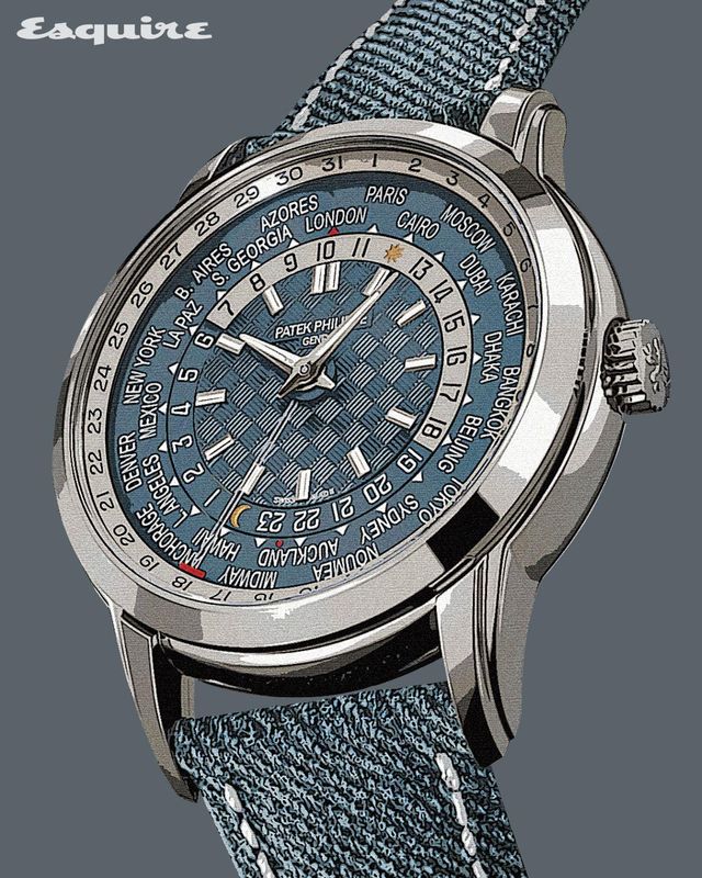 」작년, 파텍 필립 워치 아트 그랜드 전시(Patek Philippe Watch Art Grand Exhibition)에서 한정판으로 공개된 월드타임이 마침내 일반 모델로 출시됐다. 월드타임 기능 하나로만 방대한 계보를 이룬 파텍 필립은 이번 Ref. 5330G의 가세로 기술적 진보를 한 걸음 더 내딛었다. 케이스 측면의 버튼 하나로 재빨리 로컬 타임을 변경할 수 있는 코티에(Cottier) 메커니즘 덕분에 비행기에서 내리자마자 편리하게 시간을 변경할 수 있다. 주목할 만한 부분은 로컬 타임에 날짜 기능을 연동시켜 시간이 바뀌면서 날짜도 자동으로 계산된다는 점. 오랜 시간 숙제로 남아 있던 기술적 한계를 마침내 극복한 것이다. 가독성을 침해하지 않기 위해 투명하게 제작한 포인터, 현대적인 감각의 데님 블루 다이얼 스트랩 역시 파텍 필립의 세심함을 보여준다.