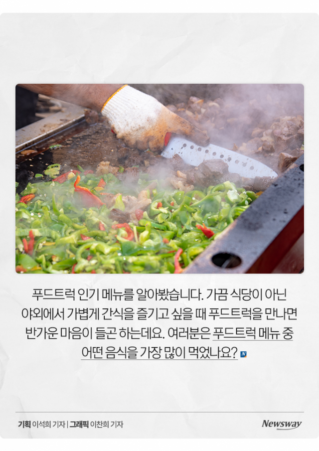 이어 초중고교와 대학교 등 학교행사, 스포츠·지역축제, 연예인 촬영장, 아파트 단지 등 순으로 확인됐습니다. 그렇다면 단일 품목 중 전국적으로 가장 많이 팔린 메뉴는 무엇일까요?