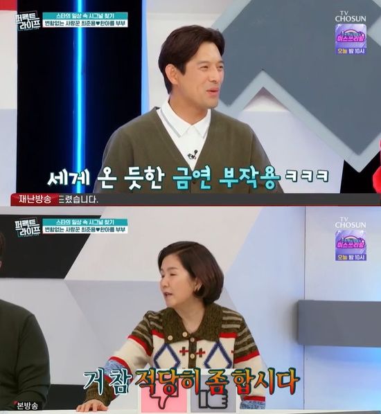 30일 방송한 TV조선 '퍼펙트 라이프'에는 배우 최준용이 15세 연하 아내 힌아름과 함께 게스트로 출연해 건강 상태를 진단받고 솔루션을 들었다.