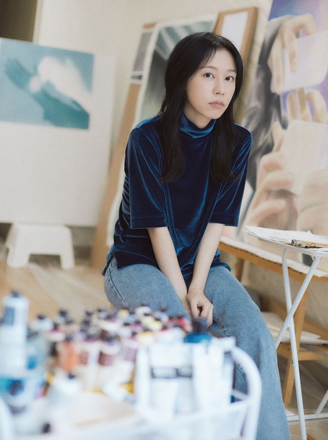 재료의 특성상 수묵화처럼 물감을 번지듯 표현하는 이들이 있는 반면, 당신의 그림은 여러 겹의 붓질이 몹시 밀도 있게 쌓여 있다. 비법이 무엇인가? 옅은 밀도의 물감을 수십, 수백 번 쌓고 하나의 색을 만들기 위해 여러 색을 겹치는 게 나만의 방식은 아닐 거다. 그렇지만 그 시간을 기꺼이 인내하려고 한다. 장지는 물을 칠하는 행위에도 종이의 성질이 크게 달라지고 습도에 민감해 날씨의 영향도 많이 받는다. 서양화에서 밑작업으로 젯소 칠을 하듯 동물의 젤라틴을 고체화한 아교반수 작업을 꼼꼼히 하는 편이다. 흔히 동양화를 전공한 이력과 내 작업의 결과만을 보고 작업 과정이 정적이고 차분할 것이라 생각하는 이들이 있지만 전혀 그렇지 않다. 동양화 전공 작가에게 관습적으로 붙는 수행이나 명상 같은 단어와 거리가 멀다. 작업실에 놀러 온 친구들이 촐싹이는 나를 보면 영상을 찍고 싶다고 할 정도로 혼자 분주하다. 물감이 흡수되기 전에 정신없이 움직일 뿐이다.(웃음)