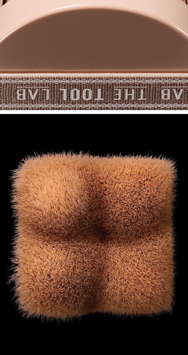 도구 맛집으로 유명한 더툴랩은 얼마 전, 쿠션 파운데이션과 스탬프 브러시를 함께 선보였다. 그동안 브러시로 바르는 쿠션이 없었던 것은 아니다. 게다가 더툴랩에는 이미 커버력, 지속력, 밀착력을 높이는 쿠션 전용 미니 브러시가 존재한다. 그럼에도 불구하고 브러시로 바르는 쿠션 ‘스탬프 스킨핏 쿠션 글로우’를 선보인 이유는 무엇일까? “저희의 베스트셀러인 초밀착 듀오(쿠션 전용 브러시와 메모리폼 퍼프)는 어떤 쿠션과도 호환성이 뛰어나지만 제형과 도구가 완벽히 조화를 이루는 더툴랩 쿠션이 있다면 좋을 것 같았어요. ‘잉크가 물든 것처럼 맑은 피부 표현’을 목표로 제형을 개발하고 장점을 극대화할 수 있는 도구를 만들었죠.” 상품기획팀 송서영의 설명. 이렇게 잉크처럼 피부에 스미는 제형과 얇고 고르게 밀착시키는 스탬프 브러시가 탄생했다. 그는 광대뼈가 발달하고 굴곡이 많은 아시아인의 얼굴형을 기반으로 고안했다며 브러시에 대한 설명을 덧붙인다. “파운데이션을 잘 머금을 수 있도록 직모와 곡모를 혼합하고 단면을 사분할 했어요. 이 상태에서 모의 혼합 비율, 밀도, 단면의 깎이는 정도를 달리하며 총 57회의 샘플 테스트 과정을 거쳤습니다.” 이후 쿠션 뚜껑에 밴드를 추가해 브러시를 끼울 수 있게 하고 모를 보호할 수 있는 실리콘 케이스까지 제작했다. 직접 사용해보니 결이 남지 않는 것은 만족스러웠지만 브러시가 머금는 제형이 많아 양 조절이 어려웠다. 4개의 돔 끝에만 제형을 살짝 묻히고 내부 뚜껑에 가볍게 두드린 다음 얼굴에 도포하는 것이 제품 개발자가 추천하는 사용법이다. 에디터/ 박경미