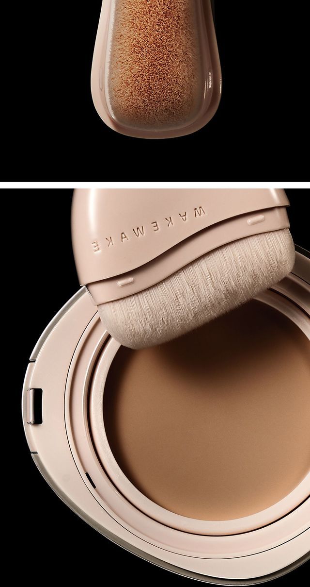 매달 신상 쿠션이 쏟아지는 가운데 지난 9월, 웨이크메이크는 쿠션이 아닌 밤 타입 파운데이션을 선보였다. ‘워터 글로우 코팅밤’은 이름처럼 은은한 광이 흐르는 피부를 연출하는 제품. 쫀쫀해 보이는 피부를 완성하는 데는 조약돌 모양의 작은 브러시 역할이 8할이다. “시간이 지나도 건조함으로 메이크업이 들뜨거나 유분으로 피부가 칙칙해지지 않는 베이스를 기획하다 밤 제형을 떠올렸죠. 하지만 두껍게 발리고 피부가 답답한 것이 문제였어요. 이를 개선하기 위해 겔을 더해 얇게 코팅되는 제형을 만들고 균일하게 도포가 가능한 브러시를 고려했습니다.” 색조 BM 이은희의 말. 그는 화장대 위에 좋은 브러시는 많지만 휴대할 만한 제품은 적다는 것에서 착안해 개발을 시작했다. “제형이 균일하게 발리고 모공과 결을 촘촘하게 채우며 윤기가 감도는 피부 표현이 가능한 형태여야 했어요. 길이와 탄성, 모양을 달리해 여러 번의 품평 과정을 거치며 둥글게 커팅된 단면이 적합하다는 것을 알게 됐죠. 실마리를 찾은 뒤에는 4~5번의 샘플링만으로 쉽게 모양을 잡을 수 있었어요.” 이후 눌린 듯한 외관의 코팅밤과 조화를 이루고 손에 쥐었을 때 느낌을 고려해 손잡이와 뚜껑을 디자인했다. 아무리 좋은 도구를 사용해도 밤 타입의 파운데이션은 늘 들뜬다는 에디터의 질문에 보내온 답. “별다른 테크닉은 없습니다. 브러시에 아주 소량만 제형을 묻히고 스패출러를 사용하듯 피부에 45도로 밀착해 펴 바르세요. 이렇게만 해도 매끄러운 피부 결이 연출되지만 내장된 퍼프로 두드리면 처음 메이크업 했을 때의 예쁜 피부를 오래 유지할 수 있어요.”
