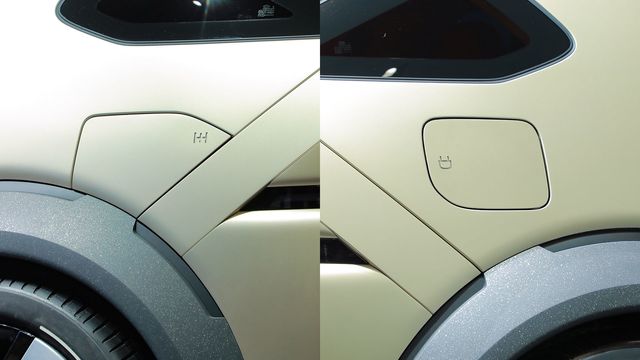 이니시움 좌측 뒷펜더에 자리잡은 수소 충전구와 우측 뒷펜더에 자리잡은 V2L 단자. / 권혁재 PD