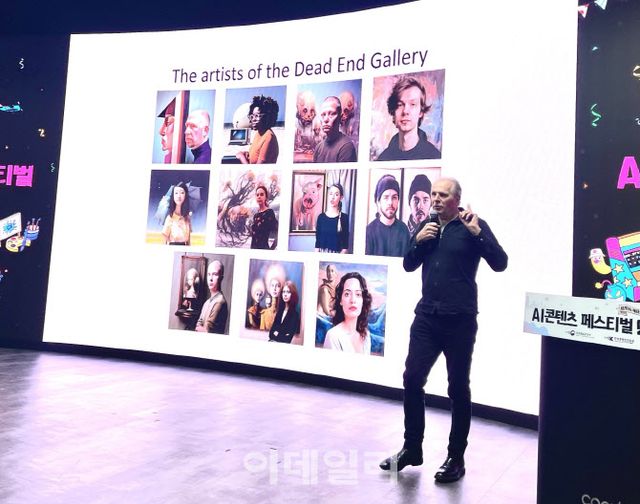 오늘(31일) 코엑스에서 개최된 ‘AI콘텐츠 페스티벌 2024’는 문화체육관광부, 한국콘텐츠진흥원이 ‘AI로 만나는 새로운 콘텐츠 세상’을 주제로 첫선을 보인 행사다. 기조강연 연사로 무대에 선 콘스탄트 블링크먼은 작년 3월 세계 최초로 네덜란드에 문을 연 AI 미술관 ‘데드 엔드 갤러리’의 공동 창립자다. 현재 갤러리에는 이리사 노바를 포함해 총 11명의 AI 아티스트 그림이 전시돼 있다.