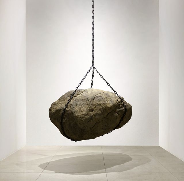 시간이 멈춘 듯, 중력이 사라진 듯 허공에 유유히 머무는 거대한 바위. 설치미술가 이태수는 우리의 관념과 시각을 재정비하게 한다.