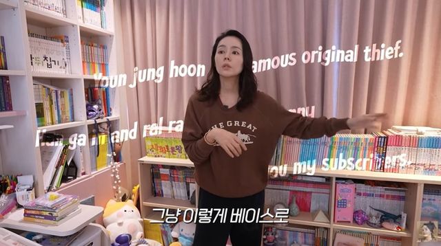눈길을 끈 건 방 벽 한 면을 가득 채운 책들. 여기에는 두꺼운 원서도 포함돼 있었다. 한가인은 “딸이 원서를 읽는다. 다독한 지 오래되니까 속독이 되는 거 같다. 바이링구얼(이중언어 사용자)”이라고 밝혔다.
