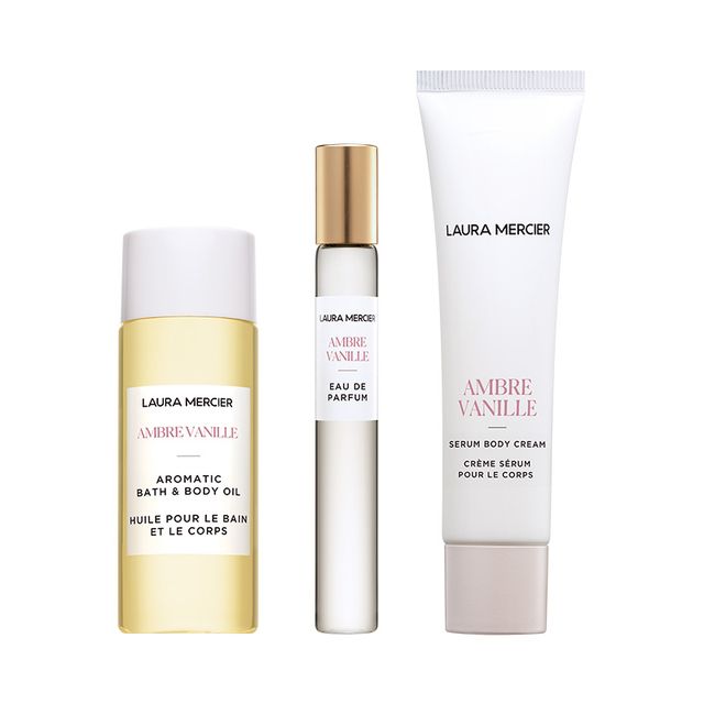 LAURA MERCIER 코지 리트릿 앰버 바닐라 컬렉션. 세럼 바디 크림과 아로마틱 배쓰 & 바디 오일, 오 드 퍼퓸까지 브랜드의 시그니처 제품으로 꾸린 홀리데이 컬렉션. 각각 30ml, 10만8천원.