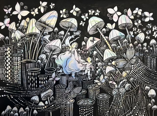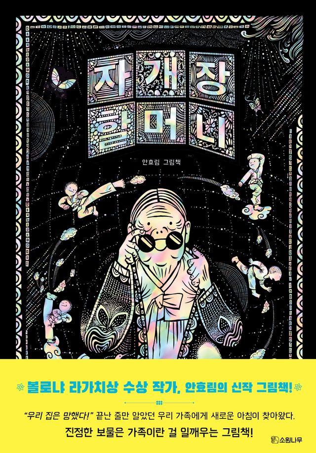 그림책 『너는 누굴까』로 볼로냐 라가치상을 수상한 안효림 작가의 2024년 신작, 『자개장 할머니』는 우리나라 전통 공예인 나전칠기 기법을 모티브로 하여 만들어진 그림책으로, 책을 읽는 내내 자개의 영롱한 빛깔과 풍성한 볼거리가 우리의 눈을 즐겁게 한다. 나전칠기는 작은 조각들을 붙이고, 수없이 칠하고 벗겨 내기를 반복하는 작업으로 오랜 시간과 정성을 들여야 하는 공예이다. 안효림 작가는 자개장이 만들어지기까지 고된 과정을 하나씩 넘어가는 모습을 통해 자개 속에 담긴 ‘삶에 대한 희망’, ‘가족을 향한 사랑’이라는 주제를 포근포근하게 녹여 냈다.