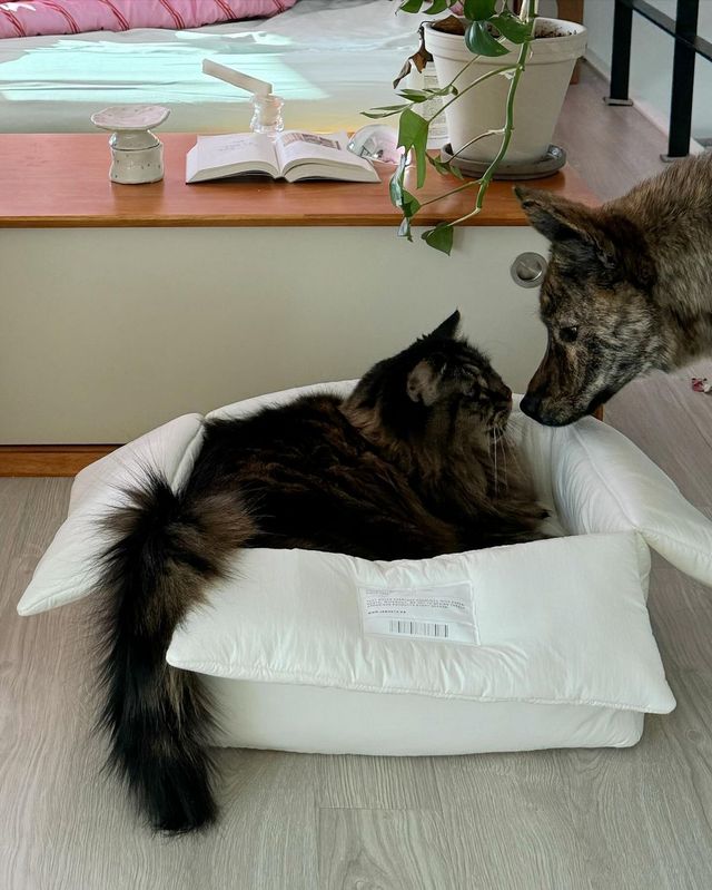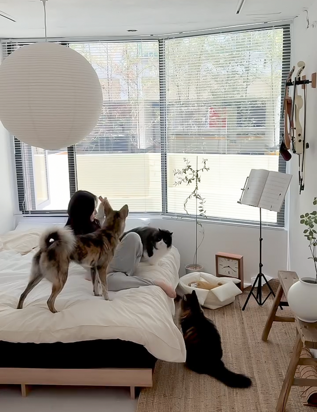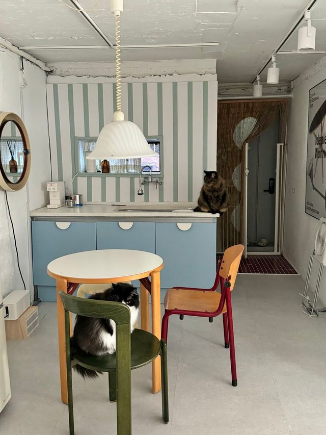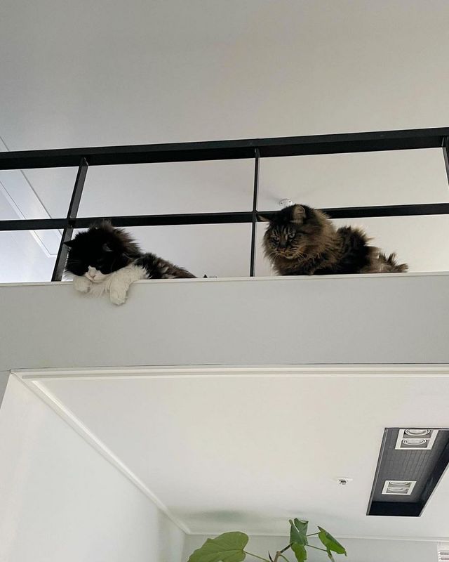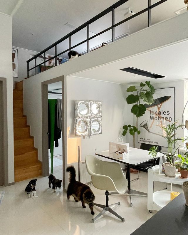 그래서 다시 서울 영등포에 있는 복층 오피스텔을 구했고, 당시엔 정말 재밌게 지냈어요. 인트와 도트는 계단을 타고 놀면서 거대한 캣타워를 200% 즐기고요. 뜨거운 시선이 느껴져서 쳐다보면 늘 위에서 저를 바라보고 있었죠.