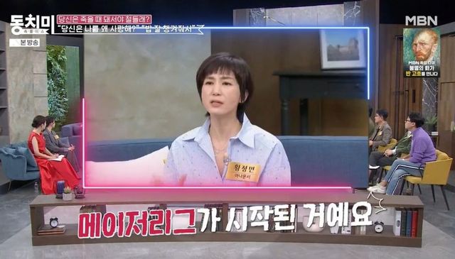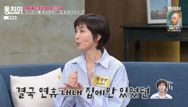 그런 가운데 황정민이 ‘동치미’ 출연 후 반응에 대해 밝혔다. 프리선언 후 ‘동치미’에 처음 출연해 정신과 의사 남편에 대해 폭로했던 황정민. 그는 “남편이 제가 방송에서 어떤 얘기를 하든 안 보겠다고 했다. 사람인지라 제가 아무리 사실을 얘기한다 해도 자기도 항변하고 싶을 거 아니냐. 기사도 안 보겠다고 했는데, 기사에 남편 얼굴도 나왔다”라고 밝혔다.