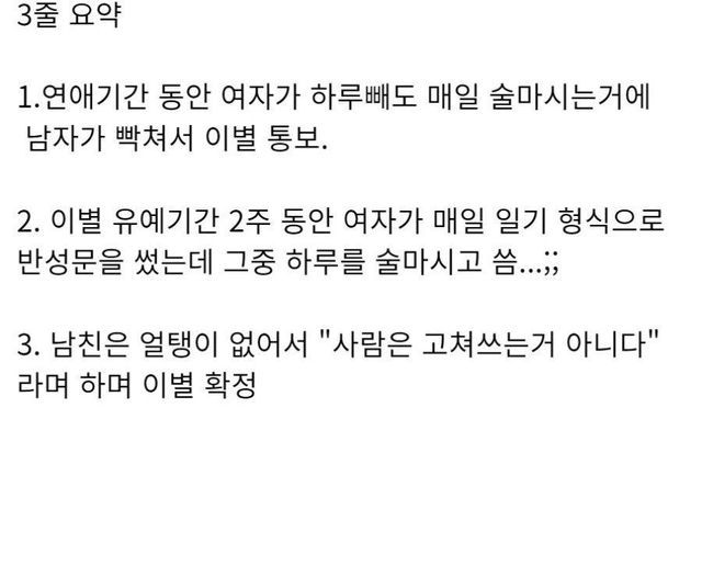 술 때문에 헤어진 여자가 남친을 잡기위해 쓴 반성문.