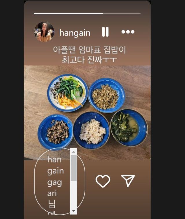 지난 9일 한가인은 개인 채널 스토리에 "아플 땐 엄마표 집밥이 최고다 진짜"라는 글과 함께 사진을 올렸다.