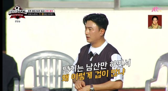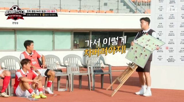 다음 대상은 최종우. 안 감독은 “네가 수비인데 뒤에서 (알짱알짱) 하면 어떡하냐. 가서 차 버려야지. 이게 축구냐”며 작전판을 발로 걷어찼다. 이어 “오버래핑 나갔어? 한 번도 못 나가잖아. 너 플레이해. 잘하는 거 있잖아. 신경 쓰지 말고. 준범이 있잖아”라며 좀 더 과감한 플레이를 주문했다.