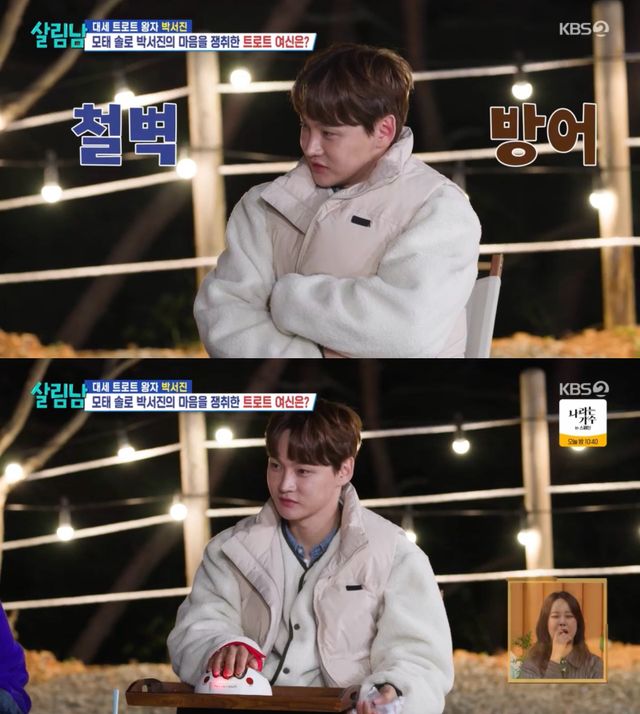 박서진은 “관심이 가는 이성이 있다”라는 질문에 없다고 답했지만 이는 거짓으로 밝혀졌고, “홍지윤보다는 요요미다”라는 질문을 받자 질문을 아직까지도 이해하지 못했다는 귀여운 변명을 늘어놓으며 설렘과 재미를 모두 잡았다.