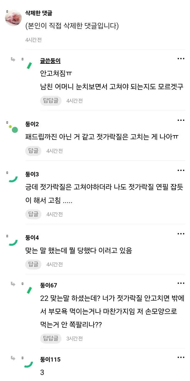 젓가락질 저렇게 하는 건 고집이 매우 쎈 사람임