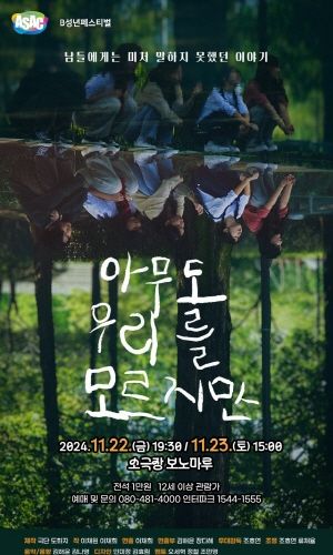 연극 <아무도 우리를 모르지만>은 극단 ‘도화지’의 창작극이다. 각기 다른 사연을 가진 아이들이 모여 자신만의 이야기를 풀어낸다. 극을 통해 청소년들의 다양한 삶, 생각들을 폭넓은 시각으로 바라보는 기회를 제공한다.