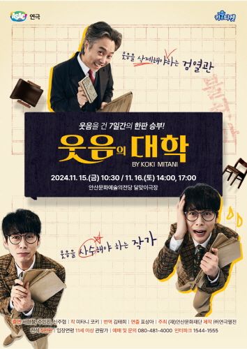 코미디 연극의 찬사를 받는 <웃음의 대학>은 일본 극작가 미타니 코키의 대표작으로 우리나라에서는 2008년 초연, 2016년까지 35만 명의 관객을 기록한 작품이다. 전쟁 중 사람들에게 웃음을 주는 희극을 없애려는 냉정한 검열관과 작가와의 해프닝을 보여준다.