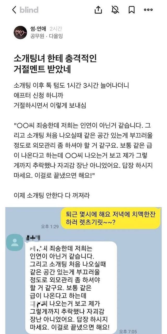 소개팅녀에게 치욕적인 멘트로 차인 공무원.