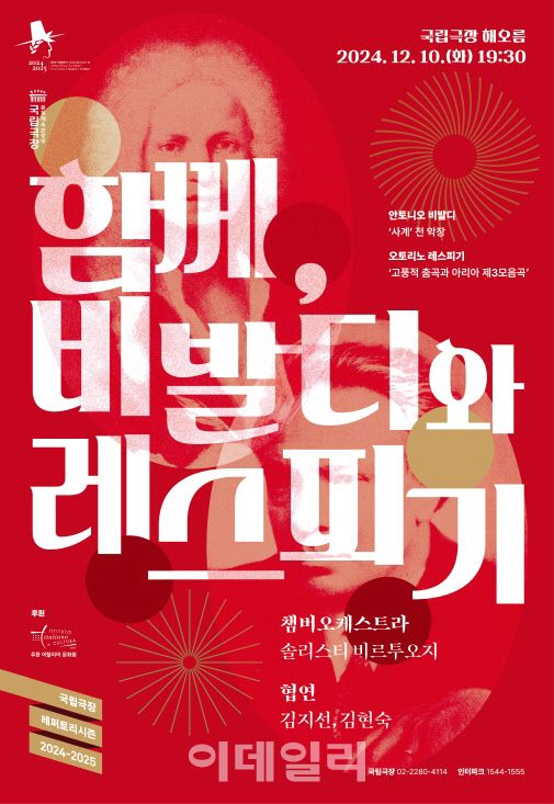 이번 공연에선 한국인이 사랑하는 클래식 음악 중 하나인 비발디의 ‘사계’ 전 악장과 레스피기의 곡 중 영화 ‘트리 오브 라이프’에 삽입돼 잘 알려진 ‘고풍적 춤곡과 아리아 제3모음곡’을 연주한다. 티켓 가격은 전석 1만원이며 예매 및 문의는 국립극장 홈페이지 또는 전화로 하면 된다.