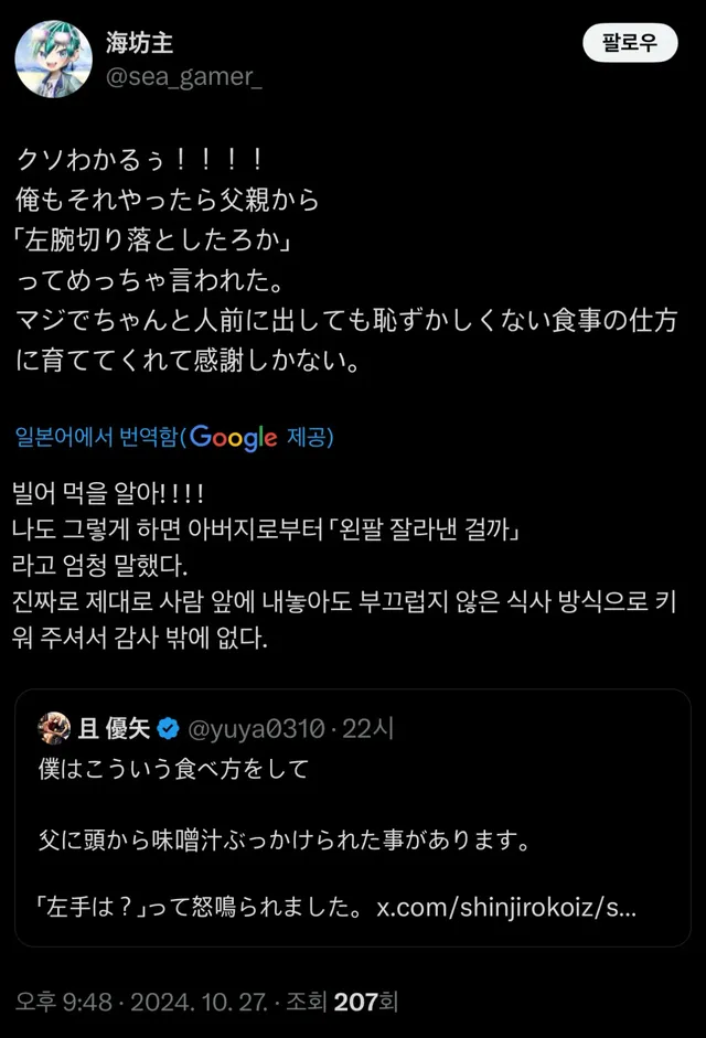 식사중에 왼팔을 쓰지않으면 “잘라내버린다” 소리까지 들었다는 일본인 ㄷㄷ