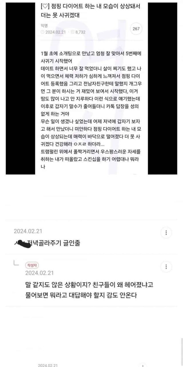 점핑 다이어트 등록했더니 헤어지자는 남친