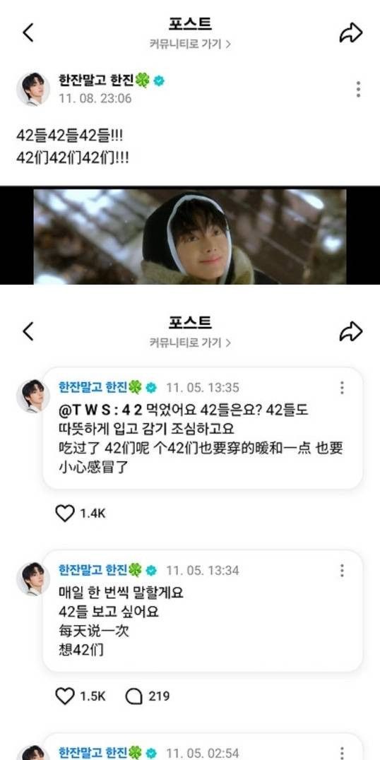 하루에 한번이상 꼭 팬커뮤니티(위버스)와서 중국어 테러하고 감