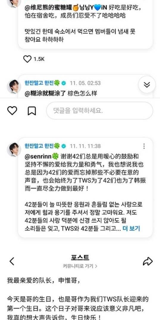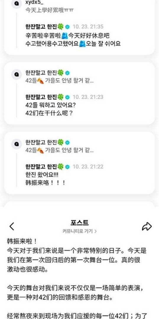 위버스는 번역기 기능이 자동 탑재되어있어서 저럴 필요가 없는데도 무조건 중국어를 씀