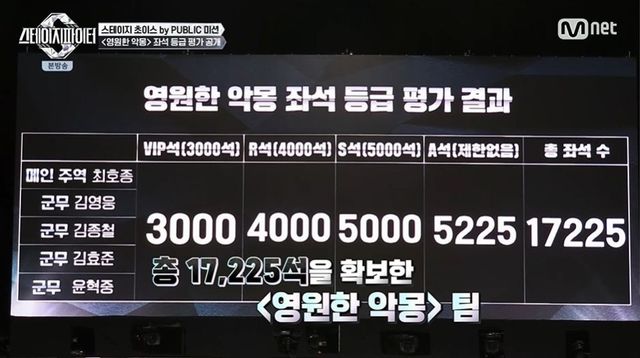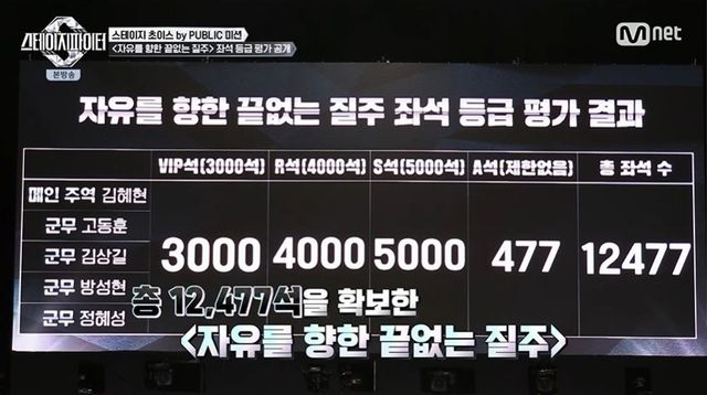 좌석 등급 평가 결과 VIP석은 매진. 5분 만이었다고. 13시간 만에 R석, S석도 모두 매진됐다. A석은 무려 5,225석으로, 총 17,225석을 확보했다. 최호종 팀은 기무간 팀을 누르고 1위로 등극했다. 군무 베스트 무용수는 윤혁중이었다.