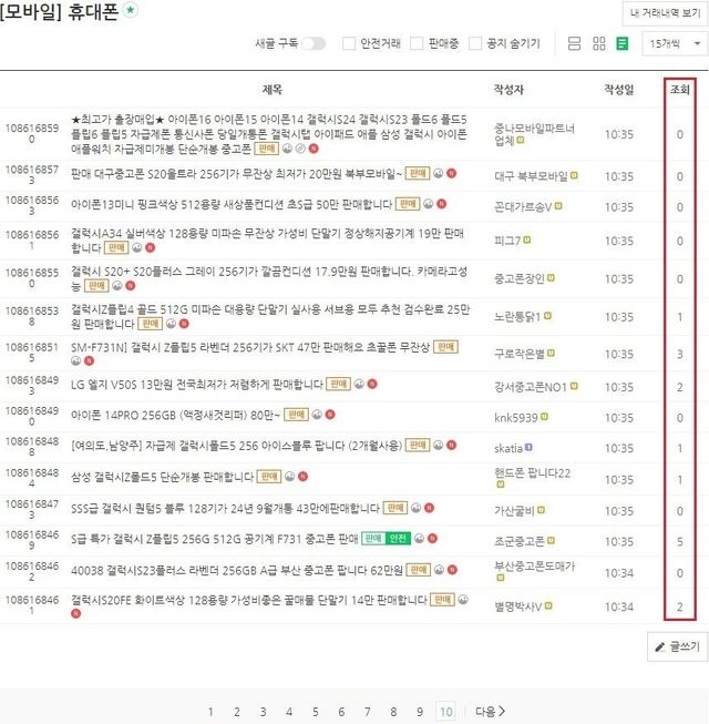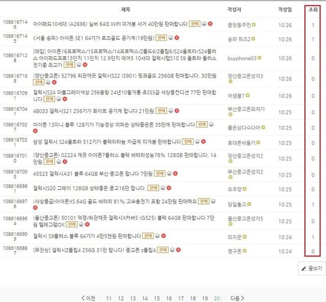 뒤쪽으로 페이지 아무리 가보아도 조회수 0 또는 1, 조회수 많으면 5정도