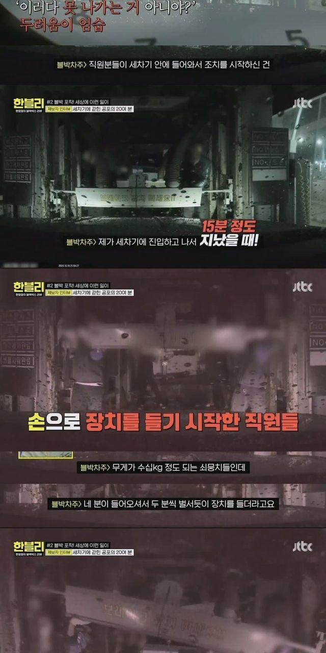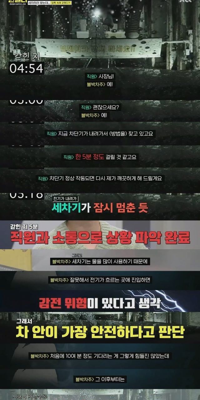 자동세차하다가 차단기 내려가서 20분 갇힌 블박차주,,