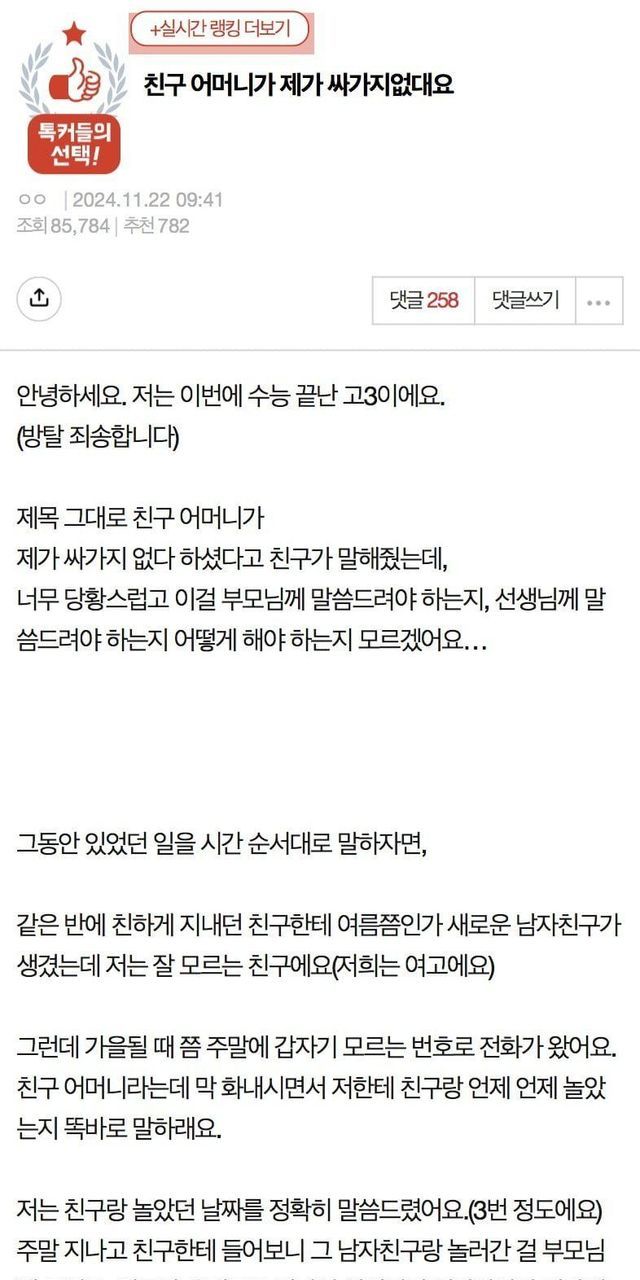 친구 어머니가 제가 싸가지없대요,,