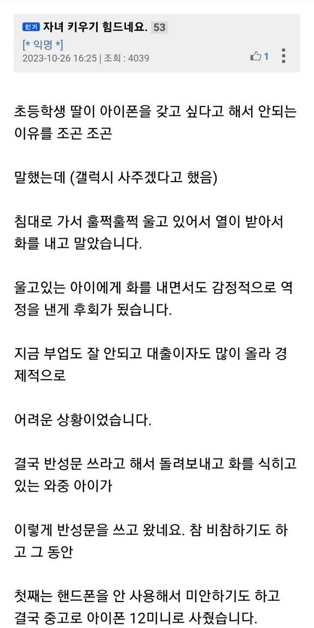 아이폰 사달라고 했다가 혼난 딸이 쓴 반성문.