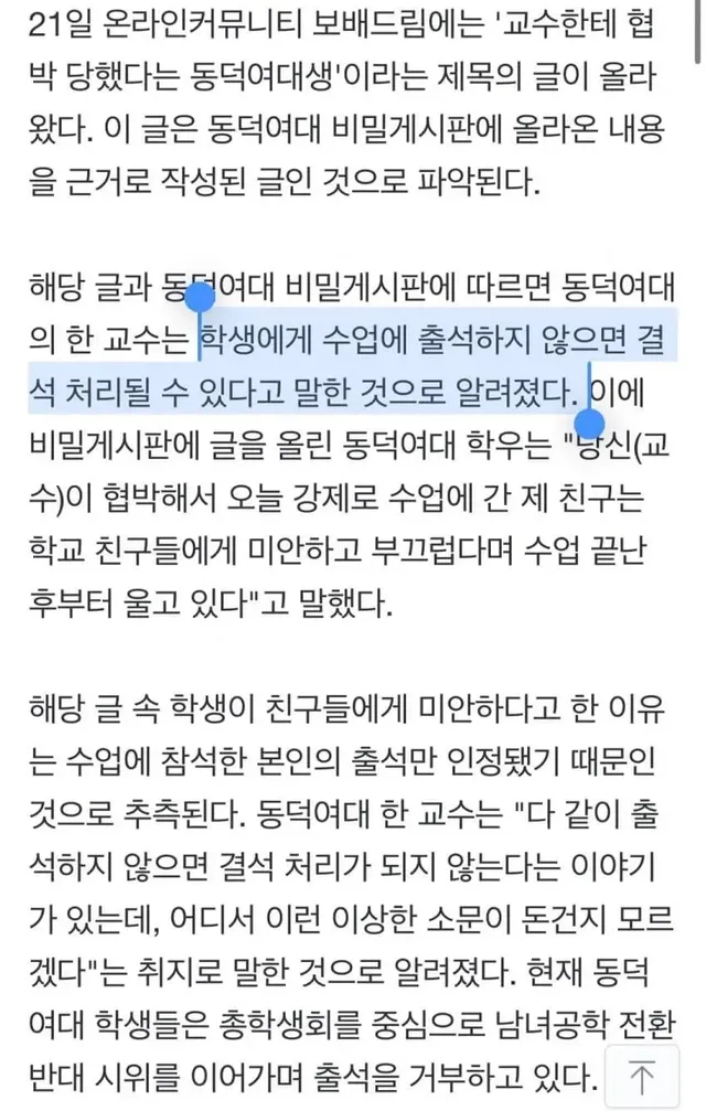 수업에 출석하지않으면 결석처리당한다고 협박받음 ㄷㄷㄷ