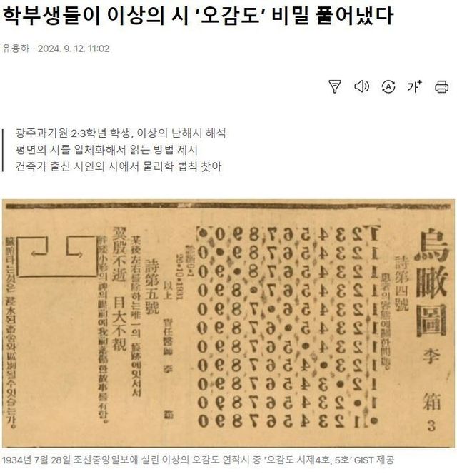 물리학자 김상욱 교수는 이상의 시 삼차각설계도등을 보이면서