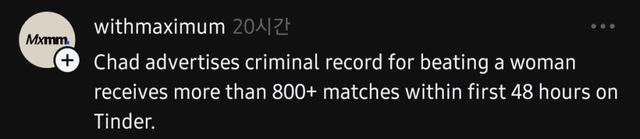 여자를 두들겨 팬 전과가 있으나 과거는 과거일 뿐이라는 정신 나간 자기소개를 올린 전형적인 서양 미남