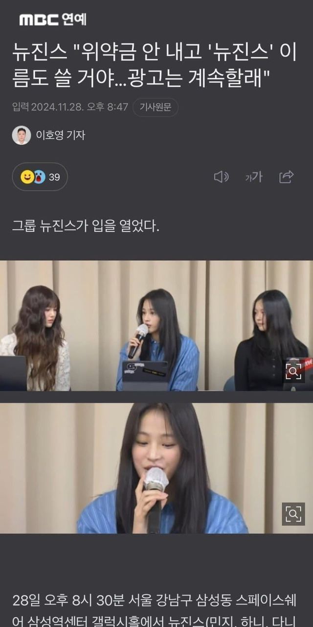 기자 : 계약해지는 적법한 법적 절차를 통해서 상호간에 합의를 해서 해야하고 그룹명은 어도어건데요