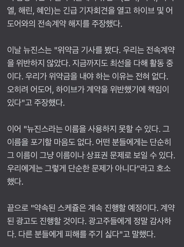 ??? : 29일 0시부터 계약해지임 기존 활동은 계속할거고 소송은 안하고 그룹명도 그대로 쓸거임