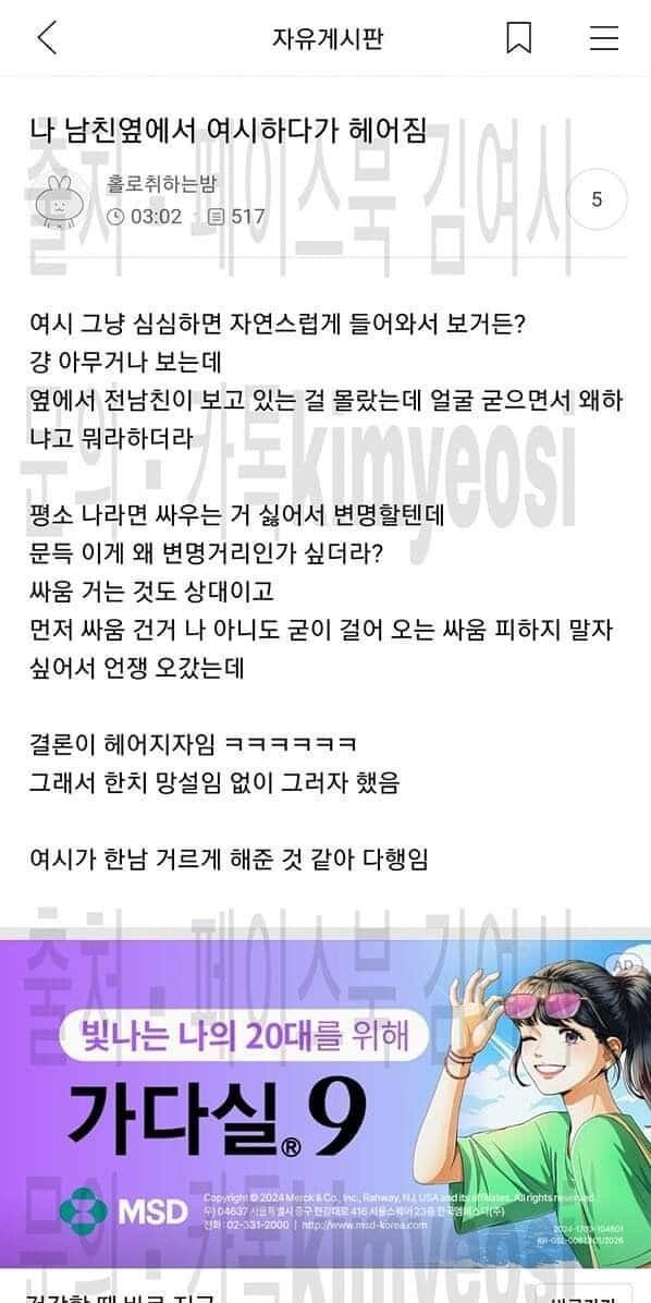 나 남친옆에서 여시하다가 헤어짐