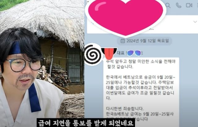 명절 선물 : 급여 늦어진다고 죄송하다는 문자