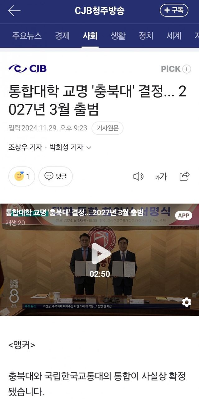 정보)26일, 29일 치뤄진 교명 캐삭빵을 충북대가 이겼다.
