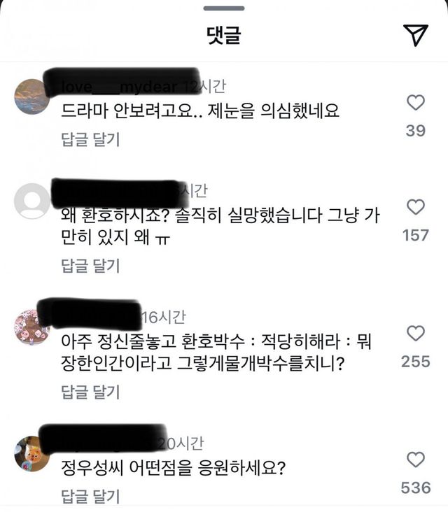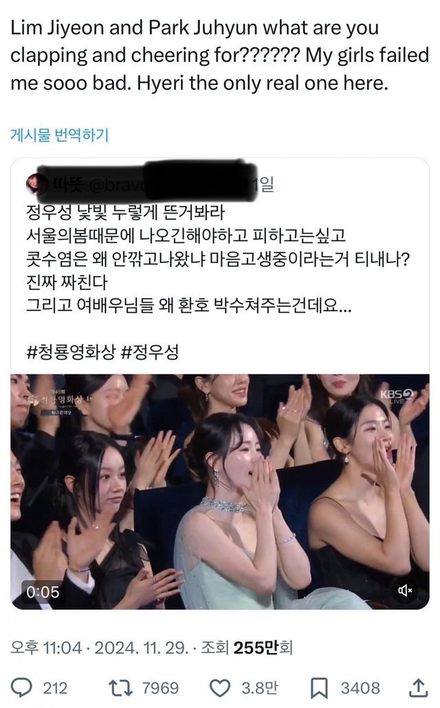 정우성이 나와서 인사할 때 박수치면서 환호해준 배우들이 있는데